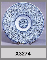 An excellent example of Golden Horn ware is the Godman surahi (flask) in the British Museum, an elegant object whose shape may derive from a Venetian glass protoype. The Italian connection is also seen in the fact that several examples of a tondino form - a dish with a small, deep bowl and wide flaring rim, which is a well-known shape from the Italian maiolica industry - are decorated in this spiral style, such as Ashmolean bowl X3274 (pictured below). Leafy spirals also turn up in attenuated form on some maiolica pieces, such as on two albarellos (drug jars). Other vessels with spiral decoration include dishes, tankards, tiles, and great basins on pedestal feet; some have olive-green outlines or touches of turquoise, which precedes the next (polychrome) phase of Iznik.